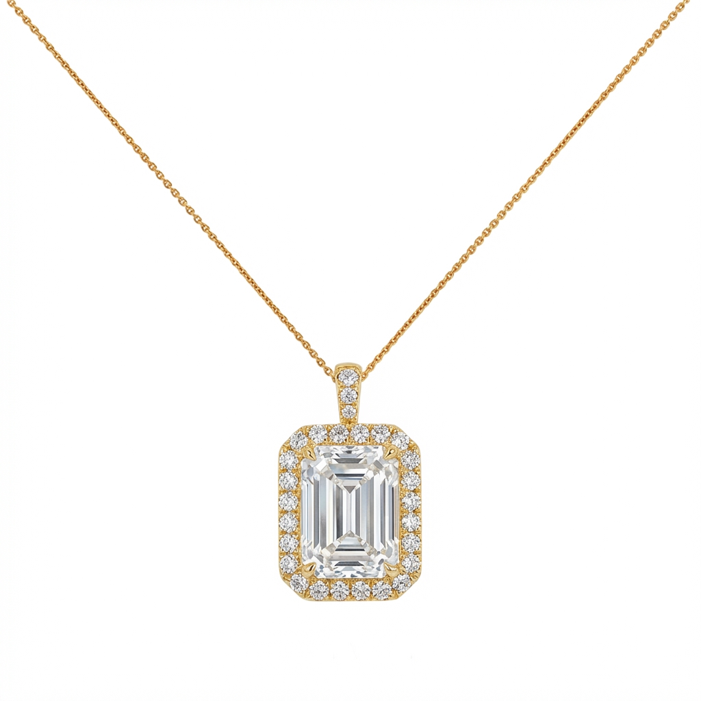 A masterpiece of radiance and refinement, these halo pendants transform the neckline...